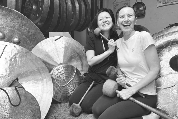 The sound of water, the soft singing of Nepalese bowls.